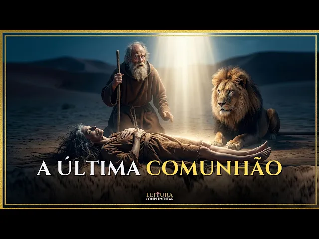 Deus ordenou ooa fosse enterrado mas eu como um velho frágil não tenho forças para cavar a Sepultura Será que Poderias tuas garras tral assim poderemos entar terra o templo mortala oão es que Z terminasse e esta cavar com suas patas dianteiras criando um buraco profundo suficiente para o sepultamento do corpo de Maria uma vez mais o ancião banhou os pés da Santa com suas lágrimas e pediu-lhe que rezasse por todos cobriu o corpo dela com terra na presença do leão e ambos foram embora seguindo seus caminhos o leão desapareceu nas profundezas do deserto enquanto zósimo
