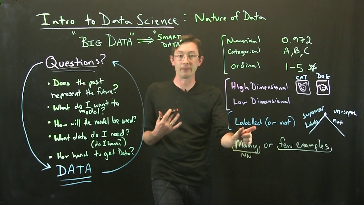 welcome back so we're talking about data science this is an intro overview lecture series on kind of what is data science how can you use it what are the aspects and one thing I think is just really important to emphasize is the data science is not new we've been doing data science as humans for hundreds thousands of years collecting data modeling the world through that data and I think data science as a terminology means different things to different people so there's what I like to think of as data intensive science data intensive engineering or data-driven