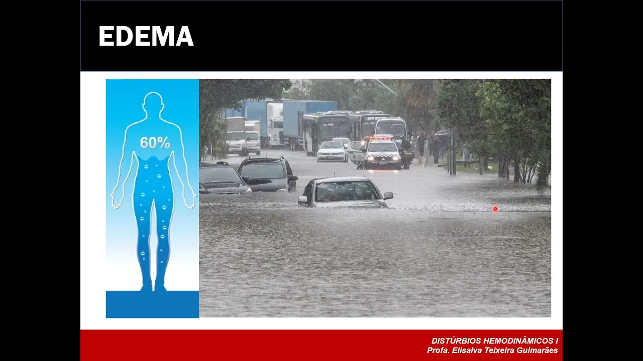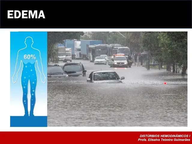 e continuando os nossos estudos sobre distúrbios hemodinâmicos agora a gente fala sobre problema e a gente também já comentou nas aulas anteriores na rua por exemplo ação que a gente tem uma situação de edema quando se observa o cúmulo de líquido nos Espaços intersticiais nos Espaços extracelulares Lembrando que o nosso organismo Ele contém cerca de sessenta setenta por cento de todo o organismo é constituído por água o restante dessa trabalho parte vamos dizer assim dessa água sem ficar de posters os dela são encontradas no interior das células um tenso encontrada exatamente nessa Matriz extracelular no