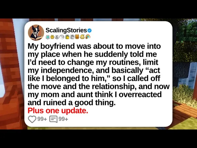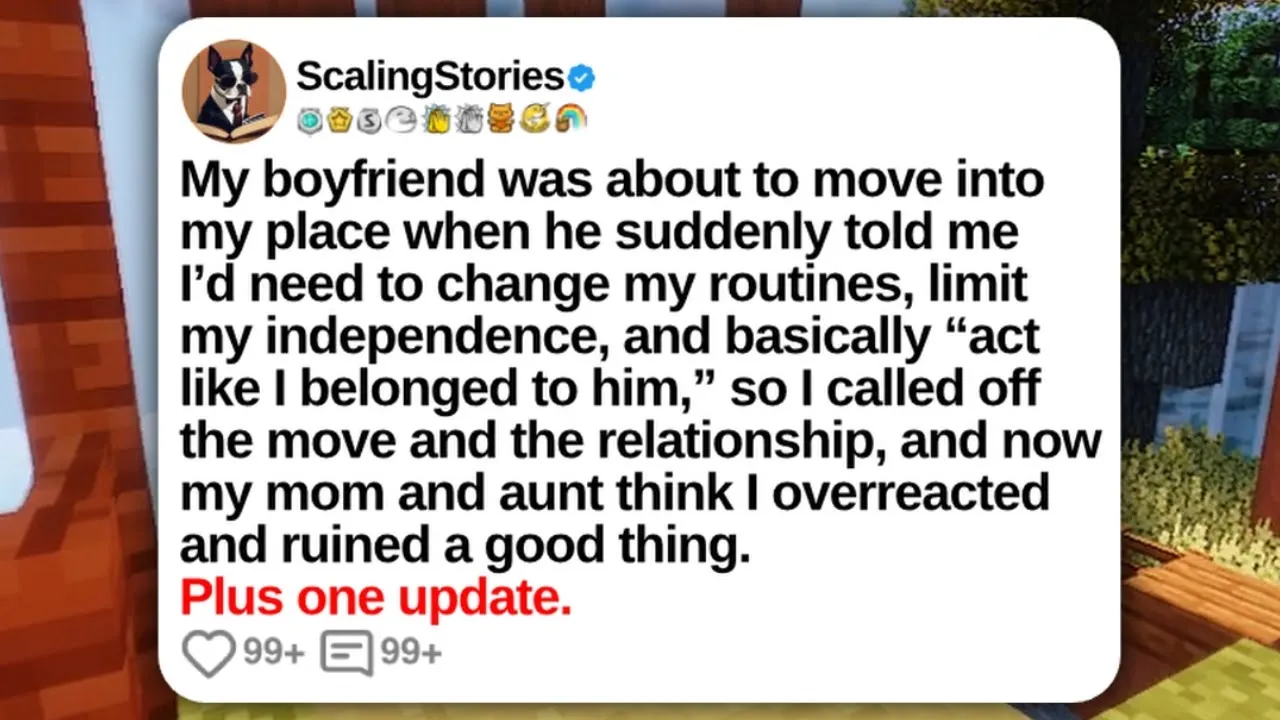 My boyfriend was about to move into my place when he suddenly told me I'd need to change my routines, limit my independence, and basically act like I belong to him. So, I called off the move in the relationship, and now my mom and I think I overreacted and ruined a good thing. Posted by you/throwway_external.