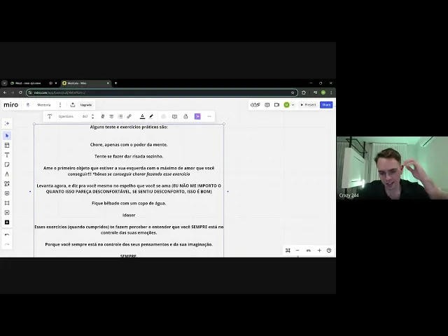 de exemplos de transmutação mental que vocês já fizeram aí alguém quer dar um exemplo aí alguém quer falar alguma coisa podem falar sse livre cara deu branco mano [ __ ] ti o exemplo perfeito velho [ __ ] que merda Ah um exemplo foi o Ah um exemplo perfeito para mim foi Acho que o exemplo foi do questão do de postar vídeo no tiktok mano foi um exemplo perfeito eu comecei a postar vídeo no tiktok e os caras tava me zoando tá ligado Tipo assim I Kéfera e não sei o que lá isso depois né