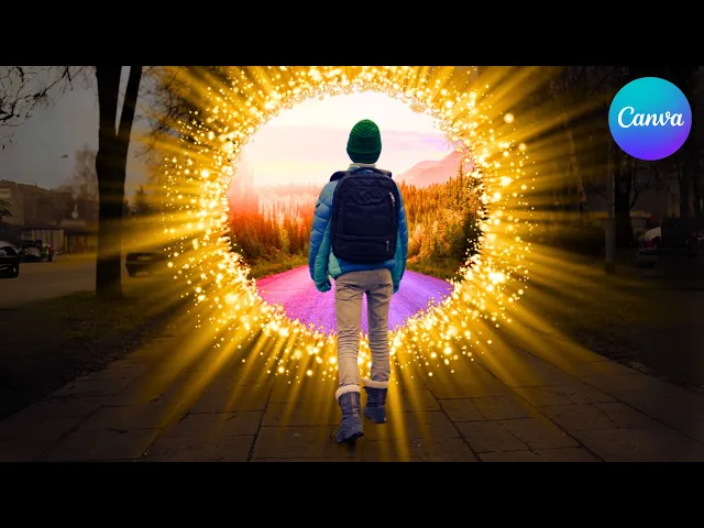 today I'm going to show you how to make this photo manipulation in canva after uploading your image drag it to the design increase the size go to edit image adjust decrease the brightness and increase the contrast go to elements and scroll down go to frames and choose the circle drag it to the design increase the size little bit like this and drag the second image inside the frame go to edit image adjust increase the brightness and increase the saturation go to elements again and type newon portal graphics and choose any one you want from this