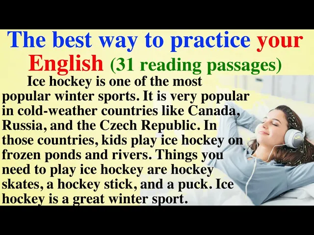[Music] foreign practice makes perfect listen and practice ice hockey is one of the most popular winter sports it is very popular in cold weather countries like Canada Russia and the Czech Republic in those countries kids play ice hockey on Frozen ponds and rivers things you need to play Ice Hockey are hockey skates a hockey stick and a puck ice hockey is a great winter sport listen and practice my hometown hi my name's Jeremy and I live in Kyoto I'm from the U.S but I work for an international company here we make video games Kyoto's a