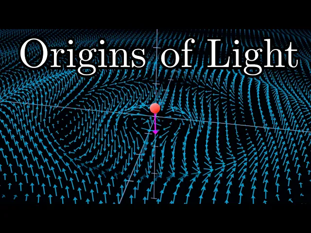 And for many of the vector fields I'll be showing, the intensity of the field is illustrated with the opacity of each little vector. This radiating influence is light, or more generally, electromagnetic radiation, including things like radio waves and x-rays and all that good stuff. As a side note, you sometimes see this propagation described a very different way that puts the fields front and center, using what are known as Maxwell's equations.