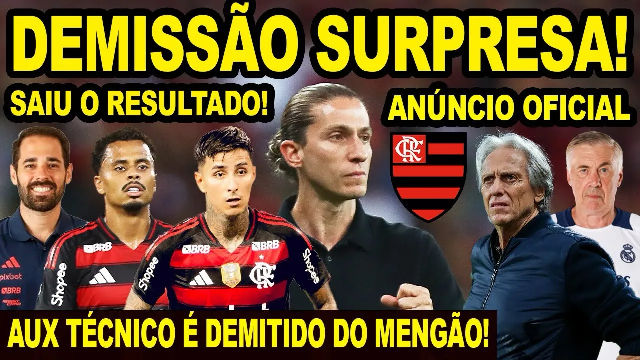 Então, pensando nisso, eu acho muito difícil que o Felipe Luiz ele aceite e eh ser auxiliar técnico do Jorge Jesus o Flamengo fosse atrás do míst. Nesse momento o M tá no mercado e o Felipe Luiz é o atual técnico do Flamengo. Por falar em Felipe Luiz e por falar em auxiliar técnico, deixa eu falar logo essa notícia que pegou todo mundo de surpresa na na tarde dessa segunda-feira, que foi a demissão do auxiliar técnico Daniel Alegria.