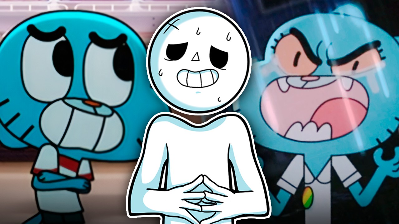 eles acham que isso é só frescura só que na verdade o que ele tem mesmo é um grande fosso de entendimento do que são essas emoções e como deve lidar com elas o sor Robinson Então tenta falar com os dois novamente Gumball O quê Eu só queria dizer que você tem um quadril enorme o quê e ele faz isso da maneira pior possível Tipo nem me pergunte o O que foi essa piada aqui e é sério surreal quantas piadas esse tipo tem nessa sexta temporada principalmente nesses episódios finais vocês iam ficar malucos dá para fazer