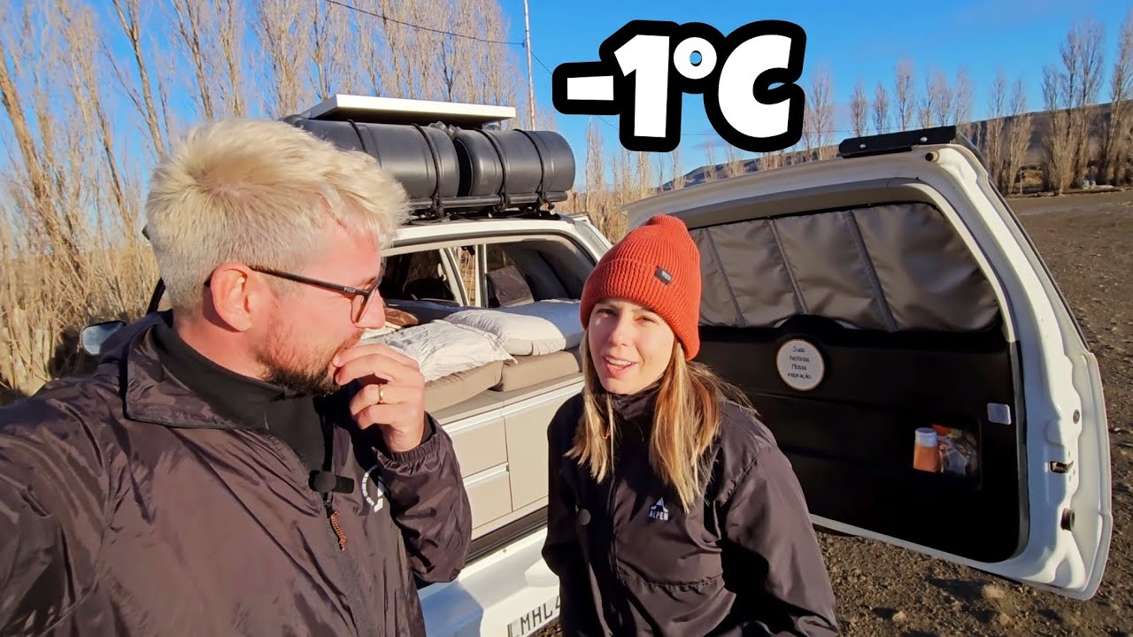 olha pessoal que linda tá mais escuro mas ol e pelo que a gente viu no mapa aqui tem um Camp que é o camp Municipal eu acho eu acho que é o camp municipal mas é um Camp gratuito então muito legal tinha comentado que tinha uma cachoeira ali realmente cara uma cachoeira ali mas ela tá congelada congelada né diea congelada n Olha o estado do P gente olha só palos Tá limpinho né amor Missão comprida tiramos as correntes n meu amorzão tudo certo dieg orora tá uma sujeira galera do carro tem que dar um banho