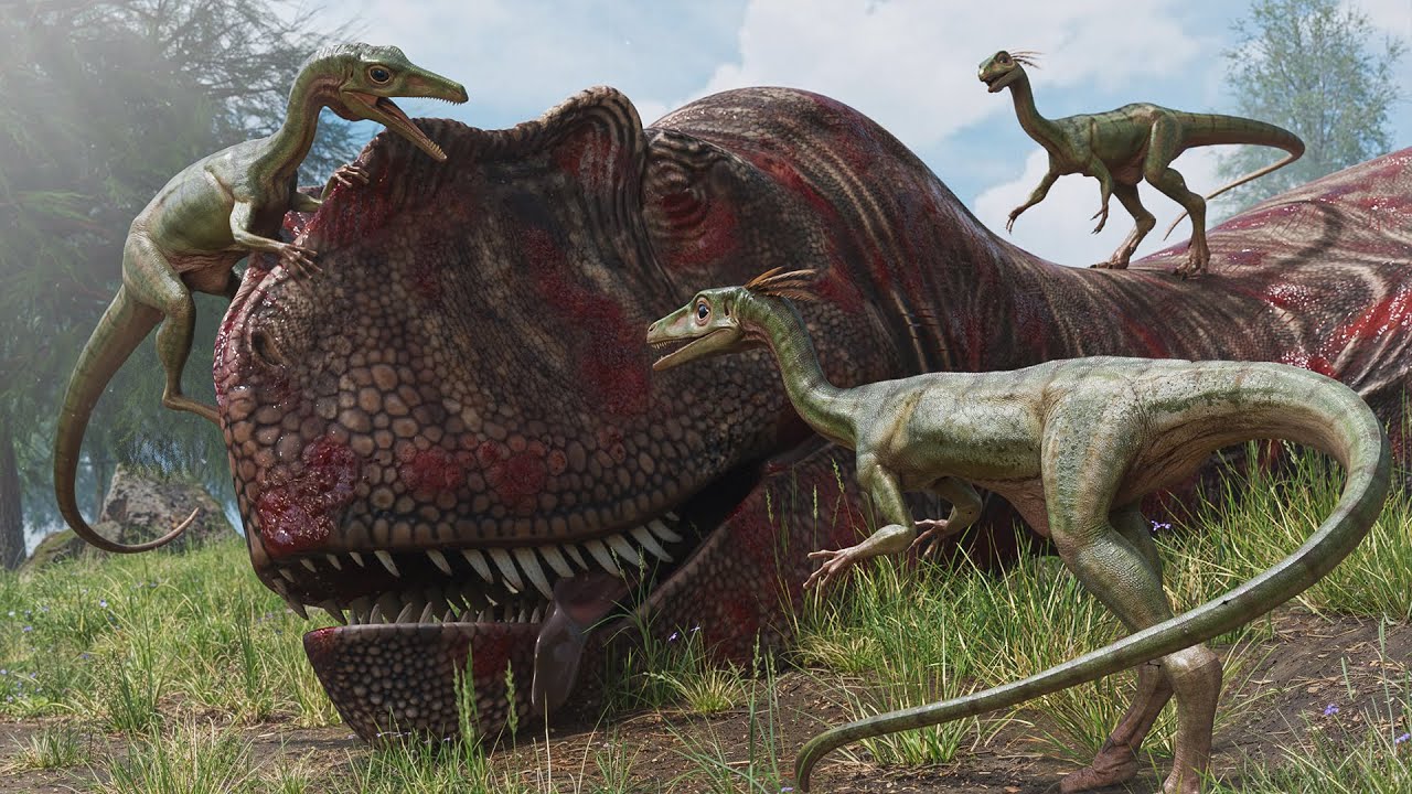calling okay he's made the kill he's going to stand behind him yep he's contesting the body I know who you really are you're a cannibol you're going to go for that little Pteranodon there running around I see you I know exactly what you're going to do there he goes yep goes to kill the little Pteranodon who barely knows how to play look at him look at him this guy there we go he's a big bully is what he is and soon he will pay wait watch out he thinks he can outmaneuver me he's wrong he's