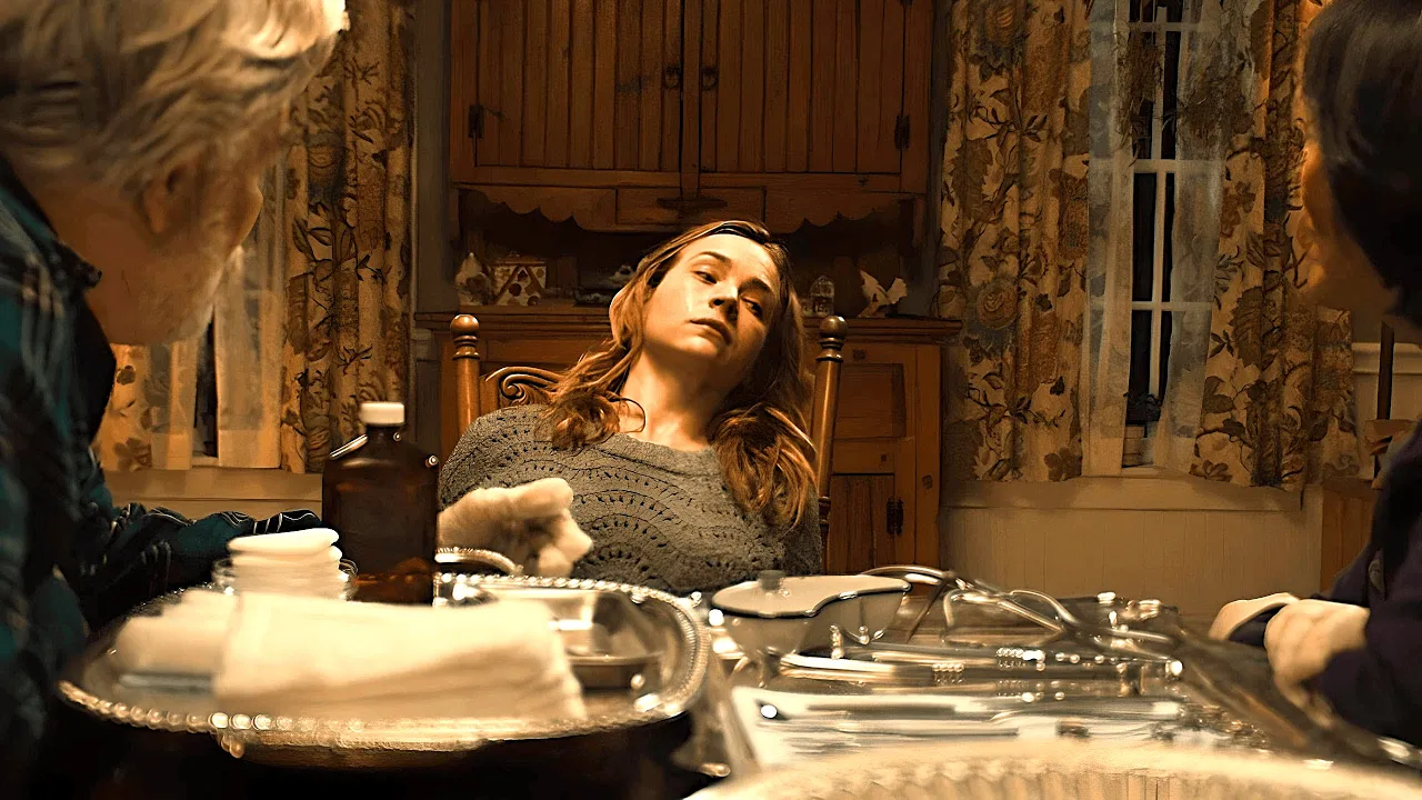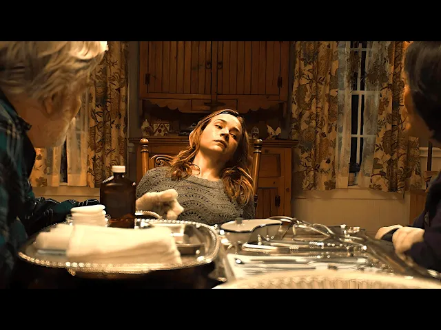 She then sees a haunted version of her mother drinking wine. Moreover, Gavin shows up and tries to have intercourse with her. Then, the old couple measure her for some ritual, while Jenna sees the same man in black creepily peeking at her through the window.