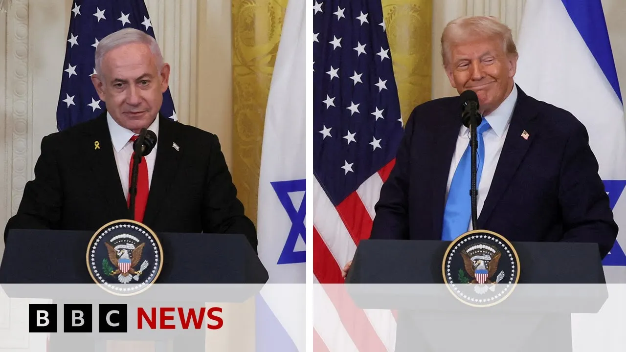 many tribulations he has a different idea and I think it it's worth paying attention to this but the proposals for Gaza with tens of thousands killed upend years of established US policy on the region and will be seen as flying in the face of international law Arab countries have categorically rejected what Palestinians will see as a plan for their expulsion Mr netanyahu's arrival at the White House came at a critical moment for the current phased Gaza truce but the president was asked repeatedly about his calls for Egypt and Jordan to take Palestinians permanently not only