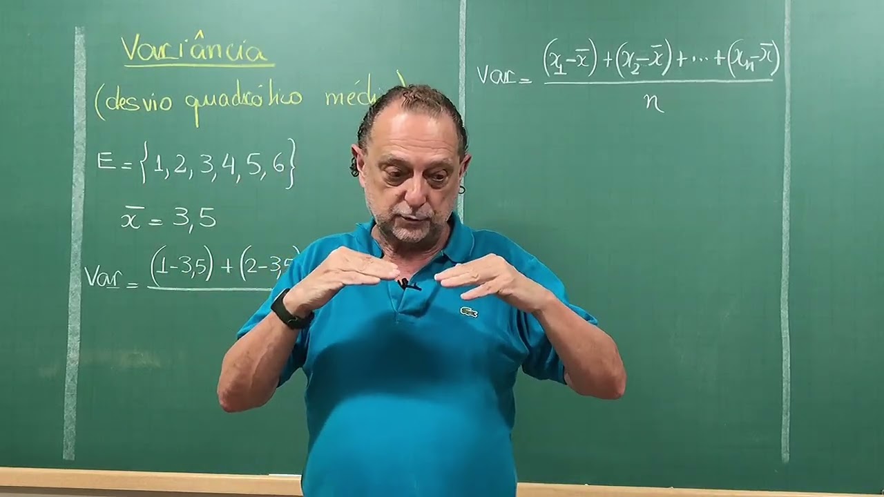 ser uma média uma média de quem professor vai ser a média dois quadrados de cada desvio eu pego cada desvio aqui é leva a segunda potência e divido pela quantidade a média dos quadrados de cada desvio eu vou chamar isso de variância agora que eu já sei aqui montar a variância vamos as contas a variância será quem quatro a segunda 16 mais um mais é mais quatro mais 9 dividido pela quantidade aqui que vai dar 5:00 aqui em cima 16 mas 4:20 mais um 21 mais 9:30 eu voltei 30 / 5 então eu acabei de