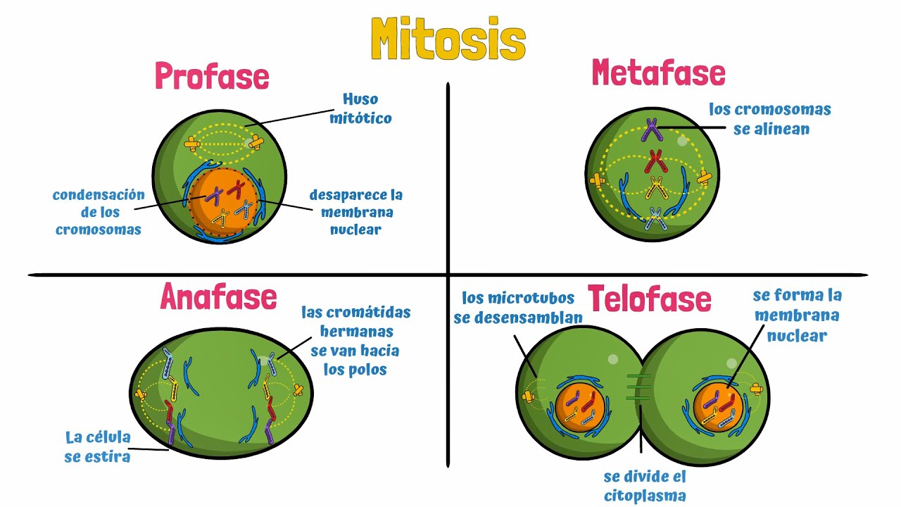 1 ahora tenemos la profa se dos meta fase 2 a la fase 2 y t los fase 2 en la profa se 2 desaparece la membrana nuclear y el uso medio tico se forma a partir de los centrosomas de la célula en la meta fase 2 el uso medio tico alinea los cromosomas hacia el ecuador tomando los de los centro menos en la fase 2 los micro tubos se acortan haciendo que las cromáticas hermanas se separen llevándolas hacia los polos de la célula al igual que en la fase 1 aquí también la célula se estira