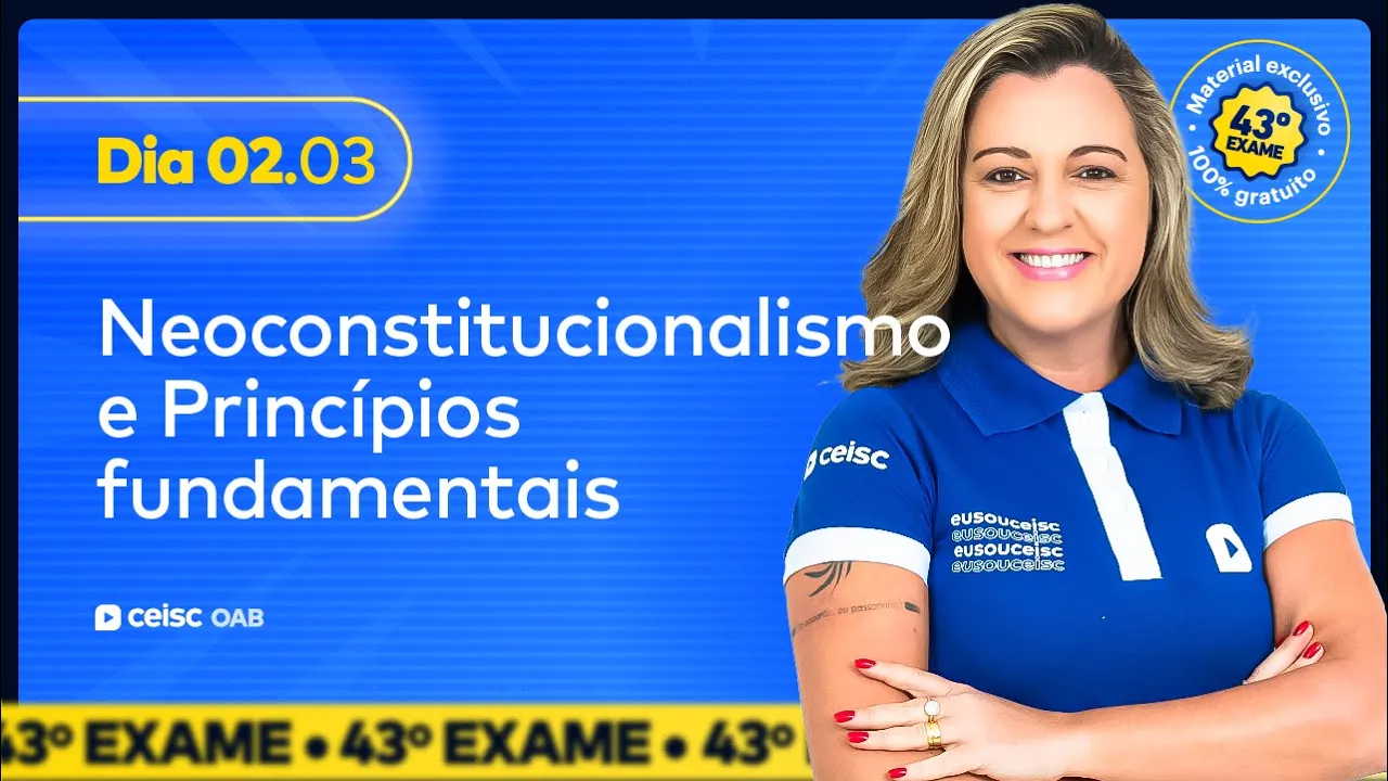 [Música] Olá nossos queridos alunos estamos aqui para mais uma aula de direito constitucional tema teórico e complexo vamos falar um pouquinho sobre o chamado neoc ional ismo e também a chamada os chamados princípios constitucionais né cada vez mais nós vemos que a OAB está tendo uma preocupação de não cobrar só a literalidade dos dispositivos mas ver como tá o domínio de vocês sobre algumas teorias né então é isso que eu vou fazer na nesse nessa aula desse momento que é o seguinte vamos falar sobre neoconstitucionalismo o que que significa neoconstitucionalismo obviamente que constitucionalismo a gente