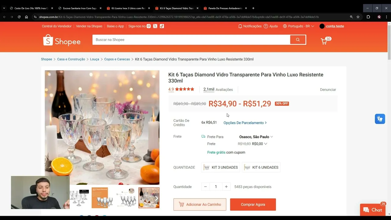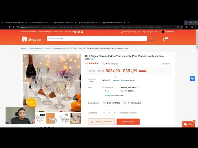 comprar seis unidades só que na variação aqui ele também criou um kit de três unidades e o que que isso resulta na shopee quando você cria uma variação com preços diferente o preço menor é o que exibe no anúncio então basicamente o cliente vai ver assim ó ele vê essa foto de seis e o preço de três ó vejam que r490 até o preço de três se eu trocar para cá ó agora sim vocês estão vendo ó 51,29 se unidades Então esse vendedor ele adotou várias estratégias aqui que ajudam muito na conversão e a principal