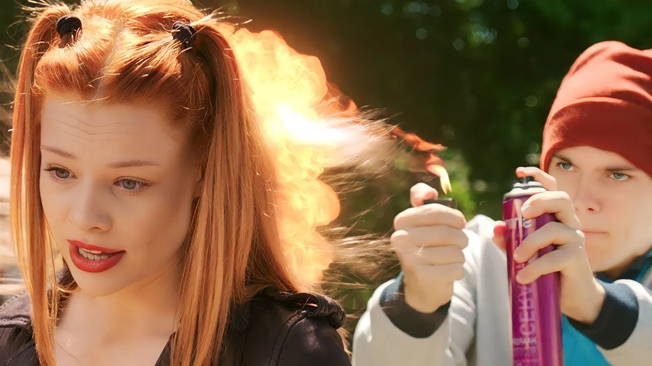 cumprimenta ela mas as garotas são mentirosam e a ignoram até que os valentões da escola liderados pelo garoto é de entram no ônibus eles começam a provocar todos os coleguinhas e passam chiclete no cabelo da grita é de agora decide atormentar a Lilith sem mesmo saber que tá mexendo com a filha do coisa ruim e assim é de aba ruiva coloca álcool na boca e usando um isqueiro lança chamas no cabelo do valentão o cara sai assustado para o outro lado do ônibus onde esconde a fumaça na cabeça pegando a touca do seu amigo chegando