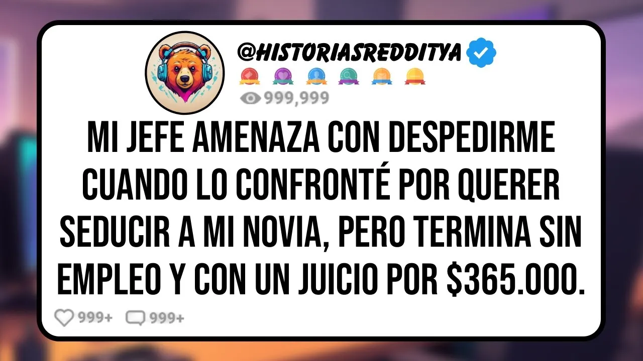 mi jefe amenaza con despedirme cuando lo confronté por querer seducir a mi novia pero termina sin empleo y con un juicio por 365,000 el último lugar a donde pediría ayuda es ready pero no tengo muchos lugares a los cuales acudir con respecto a mi problema con mi jefe y mi novia quiero contarles lo que me ha estado pasando en mi trabajo en los últimos meses y espero poder recibir algún consejo sobre qué hacer Voy a intentar ser lo más detallado posible pero también proteger la privacidad de todos los involucrados hace dos años empecé a trabajar