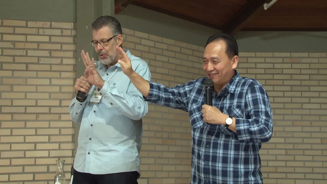 é edificar a sua igreja multiplicar a sua igreja vamos ter que construir um salão maior né mas não há problema nenhum é Mas queremos abençoá-lo para o seu ministério também o Seu Jorge muito obrigado pelo serviço de tradução e e queremos dar uma salva de palmas para o senhor e para eles [Aplausos] E aí o rolo a a o Aleluia Muito obrigado