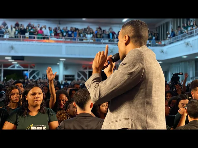 Espírito Santo Tá além da mão humana que dá capacidade do homem e com carinho lá fora troca uma presença de Deus por tão pouca coisa tão trocando a presença de Deus por cigarro por um copo de cerveja por uma noitada no motel eu tô tão feliz em ver tantos jovens lançados na presença aqui hoje dizendo eu não troca está a presença por nada nem pela minha benção eu vou falar um segredo no ouvido de quem quer ouvir ela não vai te perder não ela não vai te perder nem para o teu sonho vai te perder