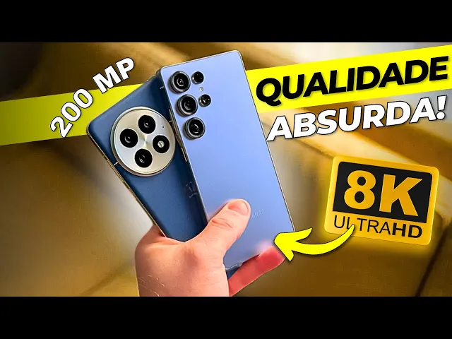 Eu falo por experiência própria. Cara, Capcut, por exemplo, ele é muito mais otimizado no iPhone do que no Android. E com relação às câmeras, aqui no Samsung a gente tem um conjunto de câmeras com uma principal de 200 megap, uma telefoto de 10, mais uma outra telefoto de 50 megaps, essa para um zoom de cinco vezes e uma ultra wide de 12.