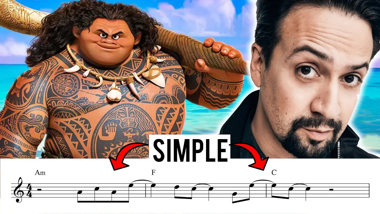 3 billion views now is it that interesting harmonically really like could we sit here and take apart the harmony be like wow this is really unusual because it goes from here to here to here not really I mean to be honest it's it's very just like yeah okay that is what it is and it's simple and it works and it's done very well but that is often where the Brilliance lies that's often where you create a hit that winds up getting 1. 3 billion views I still sometimes have to try to stop myself from falling into this trap of like well it's just doesn't have enough to it it's not complex enough sure I'll bet you could dive into incredibly in-depth complexities of Polynesian and Hawaiian music but it probably wouldn't result in 1. 3 billion views on a single hit and as we've seen in other works like Encanto this is something that lin-manuel Miranda just knows how to do really really well hey do you want to get some brand new music recommendations as well as some tips and tricks and even an exclusive Vlog well we've been doing that over on the set break it is our newsletter that you can subscribe to completely for free there's a link in the description go check it out [Music] all right so that one chord the only thing that separates this from the typical four chord pop aggression foreign that's what we expect to hear typically minor six major four major one major five that's it and those are all diatonic chords meaning that they are the naturally existing chords if you were to take simply the c major scale and only build Triads using those notes right because the naturally occurring Triads within a scalar one is Major two is minor three is minor four is Major five is Major six is minor seven is diminished and that brings us back to one so we get just the stock chords that exist right minor six major four major one major five but this chord progression does one little thing that's different that is kind of clever and a nice way to give it a little bit of a unique sound after the six four one rather than going to the five we're going to set up the return to that minor six with its five right so let's talk about what that means let's go to a minor and let's just play one two three four five right we're gonna call A1 so a minor is our one chord in this if we were to call it in this key our five of a is what e right but what is a five chord typically is it minor no a five chord is almost always dominant it's always so it's almost always major with a flat seven so that's what we would have if we played a 2-5-1 going into a minor for example it might sound like this right and what we have here is simply just the five one in a minor that's all so instead of going from C to its five or the five of the whole key that we're in which is C major right instead of going here before turning around going back to the six we instead go to the five chord of where we're heading which is a minor so instead of going C to G we go from C to E7 before it turns back around very small very simple change using this what we call a subdominant or secondary dominant it's basically a dominant chord that doesn't naturally exist in the key we're making this uh we're making this chord dominant to lead us to that a minor to restart the phrase again check it out what can I say except you're welcome [Music] Hey Okay and then we just go back to the to the one fire from down below you're looking at him yo oh we're back to this [Music] talking about uh Dwayne Johnson's voice here again one thing I like about it is they didn't clean it up so much that it's just like annoyingly dead on there's a little bit of playfulness there there's a little bit of imperfection which I think just really adds to this scene I mean it adds to the character it adds to the playfulness of the scene if you don't want it to be so perfect and I think they did a pretty good job whatever they did touch-up wise they hid pretty well so what can I say okay back to the course again exactly there's no need to break okay so now what I'm listening for is I'm looking for a bridge I'm gonna see if it goes somewhere else that we haven't heard yet you're welcome and explain every natural phenomenon the tide the grass the ground so this is basically that bridge sprouted a tree now you got coconuts what for less and what is that so harmonically it's not really it's not really uh doing anything different but it's uh it is a bridge in the sense it's a new section and I almost guarantee we're gonna go right back to the chorus again don't mess with Maui when he's on a break away and the tapestry here in my skin is a map of the pictures I win now we're using the chords [Music] back and forth you're welcome yeah so it follows a very very common uh very tried and true form is there a ton in here for me to take apart as a musician and be like wow this is super interesting not necessarily I think it's really nice to hear some of these Polynesians these subtle Polynesian influences along with just the Simplicity that lin-manuel Miranda has been known to take great advantage of and create smash hits like this I mean it just goes to prove that you don't need to go to super complex lengths to get something that's going to be incredibly successful [Music] this has literally all of the makings of just an unbelievable Smash Hit from a Disney movie it's everything that you want to make kids just want to learn how to play this thing this like play it on repeat in the car forever there's a very easy way to do it it's a very Broadway style which is of course no surprise here [Music] [Music] do you guys know what that is come on it's our favorite chord on this channel it's the minor four chord we are in E Major right so we start that whole build up we start on the minor six chord c sharp minor and we're walking up with the bass line because what this really is this next chord is just B that's it but instead of using the b in the bass we use the third we use D sharp one chord up to a minor the minor