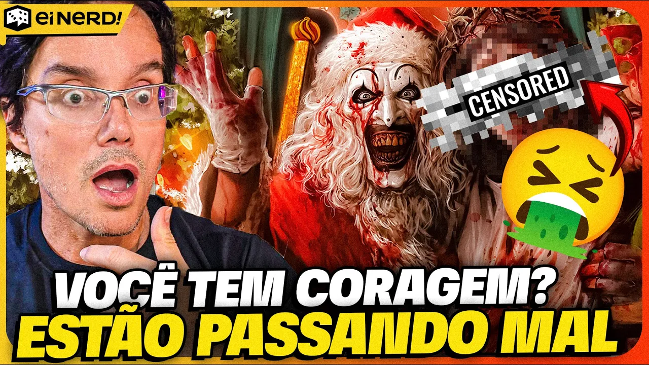 não foi por falta de aviso né primeiro filme chocou todo mundo que assistiu tipo todo mundo mesmo segundo filme chocou todo mundo que assistiu também então era mais menos óbvio que ter Fire 3 também ia chocar geral e não deu outra tem gente passando mal abandonando exceções saindo no meio do filme galera is está acontecendo como é que tá teu estômago nesse momento agora desse vídeo tá tranquilo ou se comer um negócio aí que não quer o bem já zia sua hora se não aguenta bebe leite cara a gente tá falando aqui da franquia terrify
