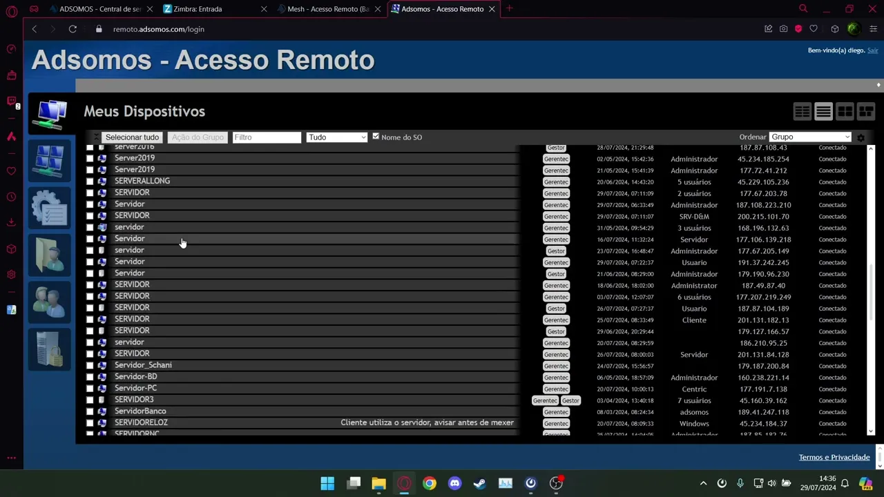 a gente inst lá do lado do cliente lá o nosso agente o cliente não sabe o que que ele foi instalado não sabe que nome a gente deu e tal então quando a gente instala renome internamente o cliente não sabe que eu dei por exemplo o nome 1 noite servidor só tem um agente lá rodando como serviço no Windows ou no Linux e o cliente não vê não consegue ver nome nada então se a gente precisar conectar num cliente e eu não souber o nome da máquina dele claro se não tiver fácil de identificar por
