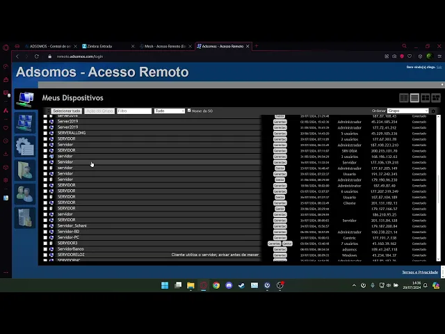 máquina interna então coordenação por etiqueta eu consigo separar aqui agora a visualização antes estava por cliente né grupos agora eu tô vendo só máquinas que tem o gerentec máquinas que tem o gestor e máquinas internas então eu posso ocultar aqui e deixar só aquilo que eu desejar visualizar para facilitar o meu trabalho no dia a dia então isso aqui é critério como a pessoa usuário quiser usar quando tiver um acesso em andamento ele vai mostrar essa flechinha dupla aqui do lado se eu clicar aqui eu consigo ver quem tá conectado Esse é a máquina na
