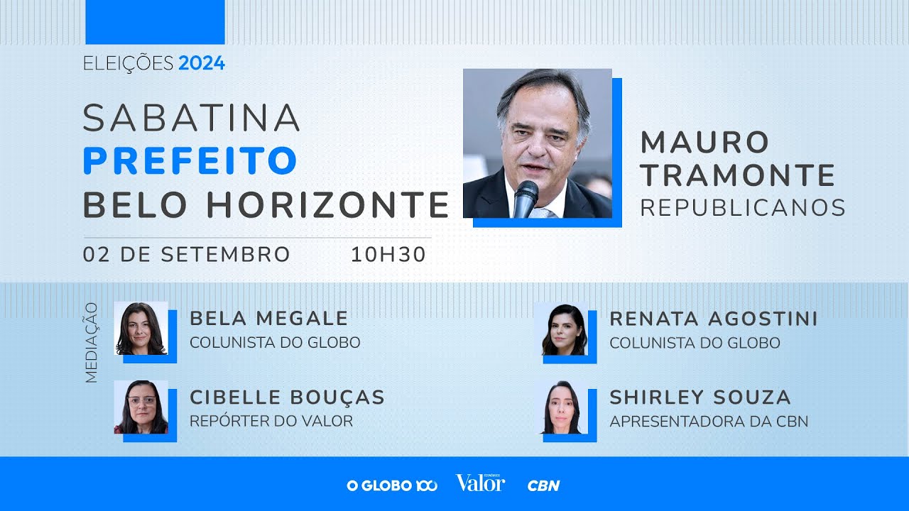 acompanha aqui na FM o tempo eu sou tal Marinho e comigo aqui no estúdio tem ele Guilherme bom dia para você guilerme para você para quem nos acompanha fechando a semana da nossa série de sabatinas com os candidatos à Prefeitura de Belo Horizonte hoje a gente conversa com o deputado estadual Mauro Tramonte da Coligação à voz do povo formada com republicanos e o partido novo filiado ao partido republicanos maur é formado em Direito além de ser jornalista radialista e apresentador ele também se destacou ao assumir cargos na cidade de Poços de caudas em 2018 se
