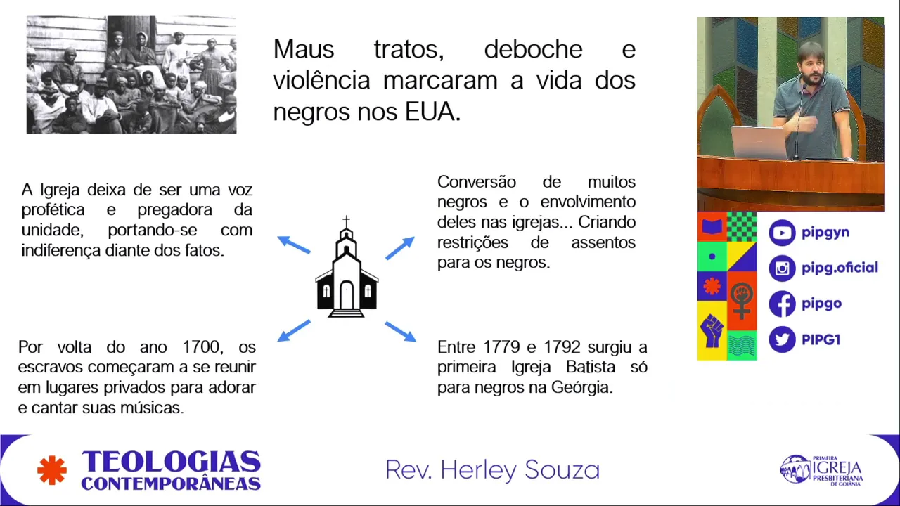 invadir a primeira Presbiteriana porque é uma igreja impressora então assim se constava naquele documento se aquela igreja era uma igreja vista como uma igreja opressor e assista então alguns negros com mais tarde para essas igrejas e tumultuar Os cultos atrapalhar E por aí vai tá então nós vamos ver daqui a pouquinho que de acordo com o seu grande expoente E esse tipo de manifestação é válida Tais tipos de manifestação acaba sendo válido e o grande expoente ou é o Denis cone não é o Rio Grande nome da teologia Negra eram tem um teólogo negro mais
