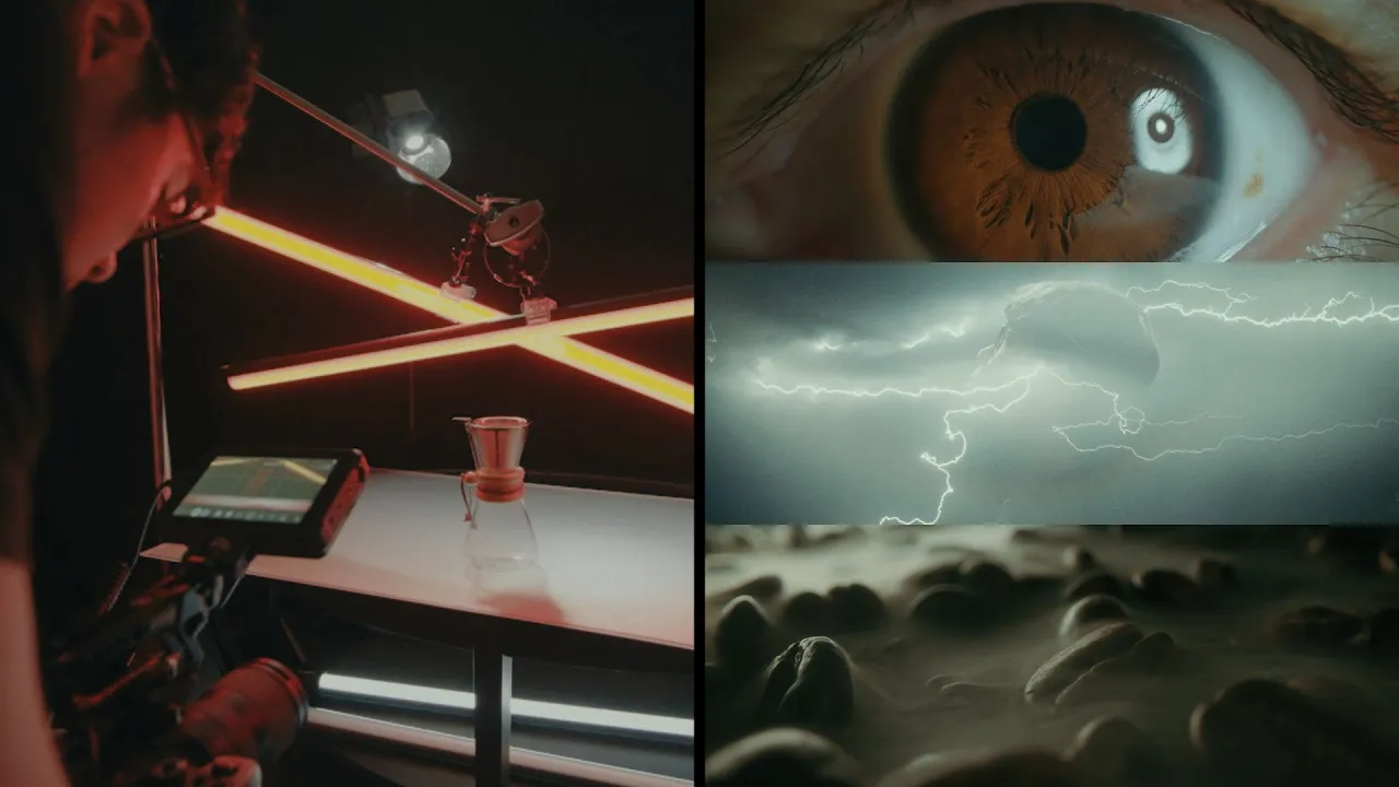 allowed me to Arc the camera smoothly around the coffee cup it's a bit of a monstrosity with all the stands and arms securing it in place but I really needed to make sure it was absolutely rigid cuz I really wanted to create a moment where the camera focuses on the storm that's brewing in the cup which required me to shoot two plates first I captured the coffee just sitting there calm and still then I shot the second plate with two LED lights set to strobe creating that sense of Chaos in the cup one video co-pilot