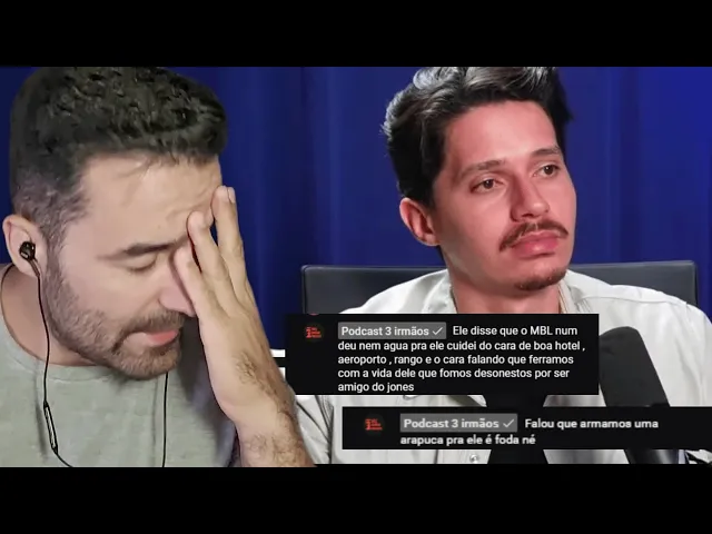 E aí sai isso daqui, ó. Eh, sai aqui podcast 3 minutos. Ele disse que o MBL não deu nem água para ele.