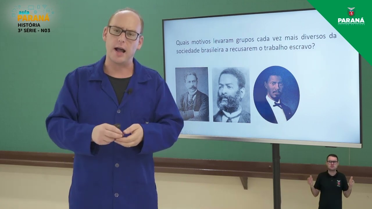 Olá saudações alunos da 3ª série do ensino médio do Estado do Paraná estamos começando mais uma aula de história aula essa em que nós vamos justamente abordar o fim do trabalho escravo no Brasil e como ocorreu a substituição do trabalho escravo no Brasil para o trabalho assalariado Então quais são os objetivos da nossa aula de hoje simplesmente identificar as causas que levaram ao crescimento do movimento abolicionista no Brasil também conhecer os protagonistas do processo abolicionista e as principais legislações que levaram ao fim do uso esse tipo de mão de obra no Brasil assim como compreender