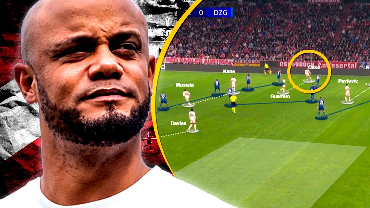 boniface mais Centralizado virs pela da esquerda e o bay de Munique utilizando sua organização ofensiva tradicional aí pelo menos nessas primeiras partidas com o Company inclusive é a mesma organização que a gente viu na análise anterior do detalhe do modelo de jogo do Bayern o p mecano e Kim pavlovich e kimich pela direita guerreiro e oliz musiala e Harry Kane pelo meio guinabre e Davis a dupla pela esquerda e já aproveitando projetando o outro lado da interação a posse de bola do leveren mas Munique então no seu desenho tradicional como eu disse na análise do