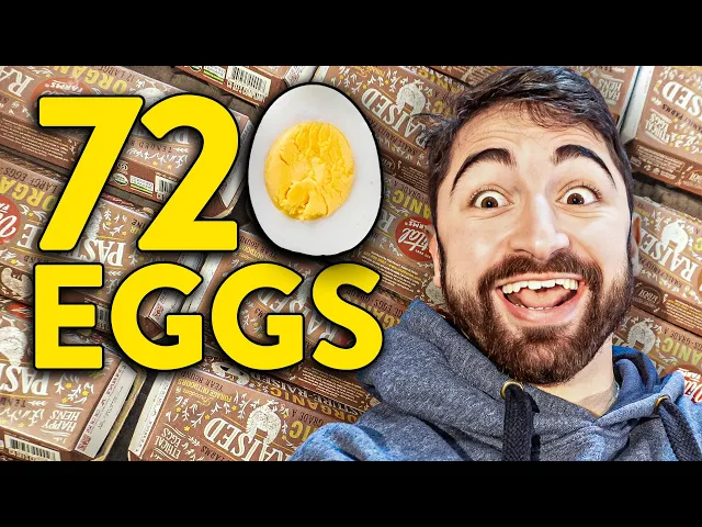 I ate one egg per hour every hour for a whole month well first things first to clarify I did in fact sleep that was an average so I ate 24 eggs per day two cartons for 30 days for a total of 720 eggs over one month now second thing second why did I do this setting aside from the fact that I'm a little bit crazy but crazy with a purpose generally well 10% I did this because I just like eggs 20% I did this for the egg puns and yolks I'll drop throughout the video can