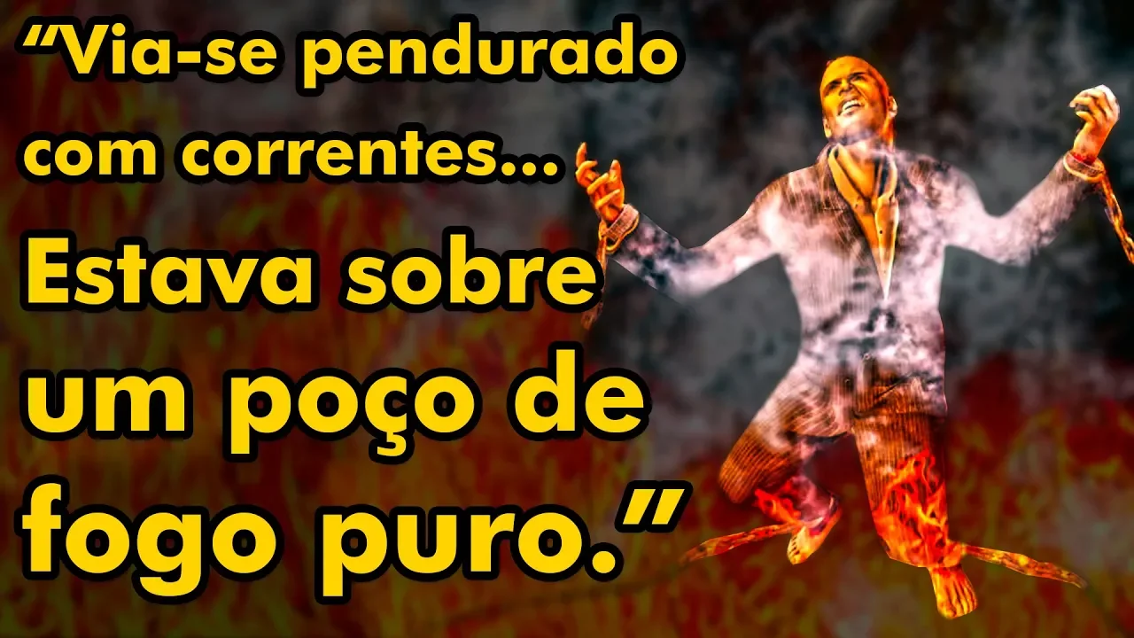 escuridão metro borges fortes um executivo americano relata algo bem pior do que o que já trouxemos ele estava em atlanta do lado de fora de um restaurante qualquer quando foi atingido por uma bala perdida teve que ser ressuscitado algumas vezes no caminho até o hospital não à toa quando deu entrada lá foi induzido ao coma e durante esse processo todo sua experiência aconteceu e ele não queria ter passado por isso não sua passagem foi um fair no literalmente via se pendurado concorrentes bem apertadas em seus braços e pernas estava sobre um poço de fogo puro
