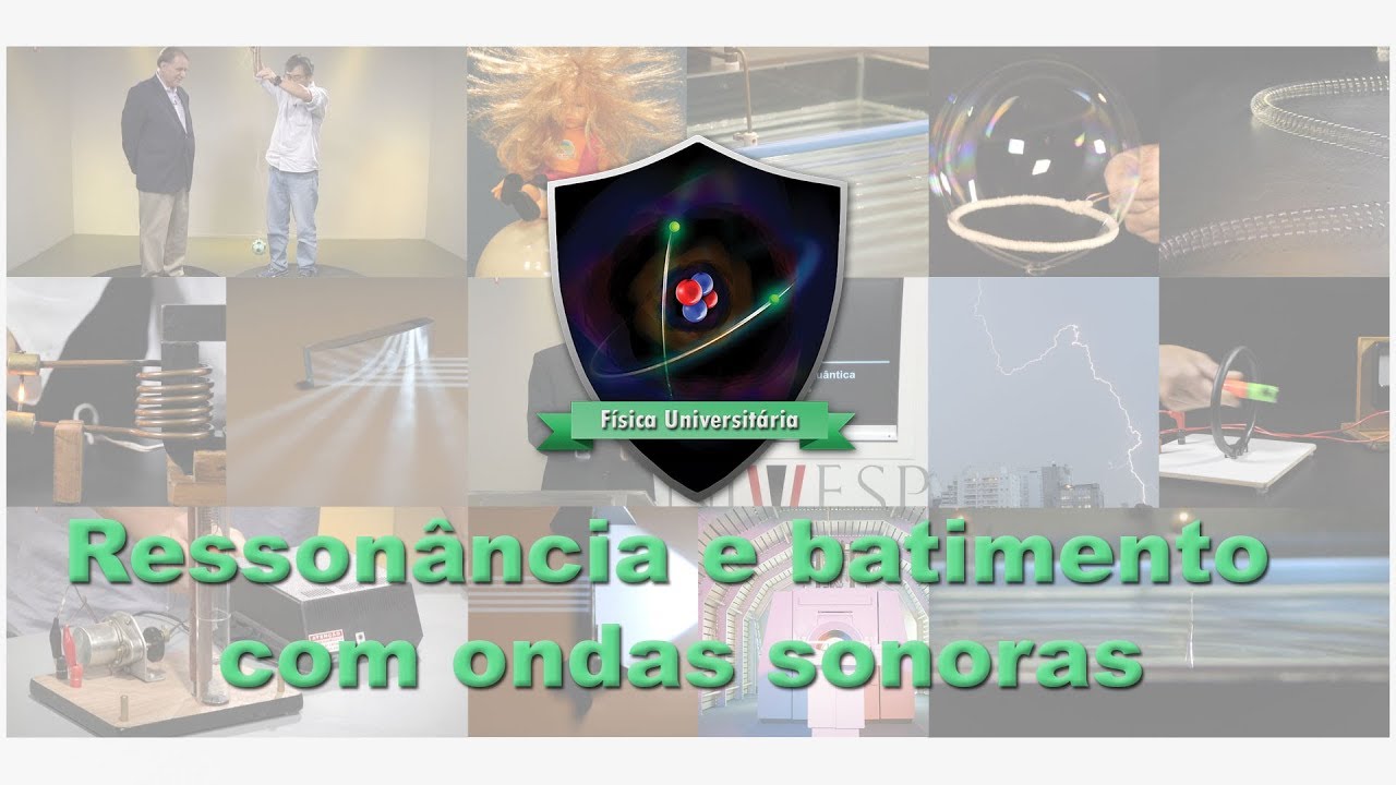 frequência levemente menor comparada com a frequência do outro diapasão por causa desta pequena diferença entre as frequências podemos ouvir o som de um deles interferindo com o som produzido pelo outro tendo como resultado o fenômeno chamado de batimento [Música] mudando um pouco mais a posição do pezinho podemos ouvir a mudança na frequência do batimento que fica um pouco menor podemos ainda fazer um outro experimento usando um diapasão menor mas que ten a mesma frequência assim quando posto para vibrar ele também excitará o ar dentro da caixa de ressonância que Amp ficará o [Música] som a
