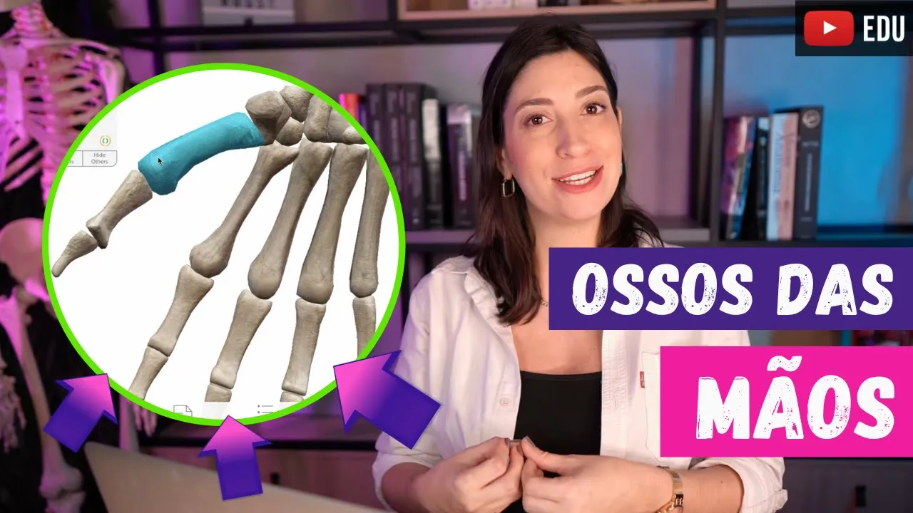 Olá pessoal tudo bem com vocês hoje a gente vai fazer uma revisão rapidinho sobre os ossos das mãos eu sou a professora Natália René que seja muito bem-vindo ao canal anatomia etc Hoje a gente vai falar sobre os ossos das mãos Vamos tentar fazer uma revisão aqui bem rapidinho para você conseguir revisar esse conteúdo pós aula ou pré-prova Lembrando que esse conteúdo aqui de sistema esquelético faz parte de um curso muito mais aprofundado com muito mais detalhes aí de anatomia e fisiologia do sistema esquelético onde eu aborto anatomia fisiologia e histologia acidentes ósseos e vários