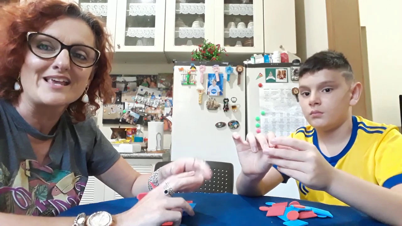agora fiquei muito orgulhosa de você você então você parou você fez três tipos de classificação você pode ficou primeiro por cor por cores depois por formas e ter último por último os tamanhos mesmo mas ficam ali no meio ótima perfeito então o tomás tá na na idade cognitiva correta porque ele conseguiu a fazer três tipos de classificação ea dicotomia quer dizer que você precisa dividir em dois em dois grupos então ele fez três tipos de classificação a primeira por e depois por formas e agora por tamanho professores queridas de toda a classe educação infantil vocês