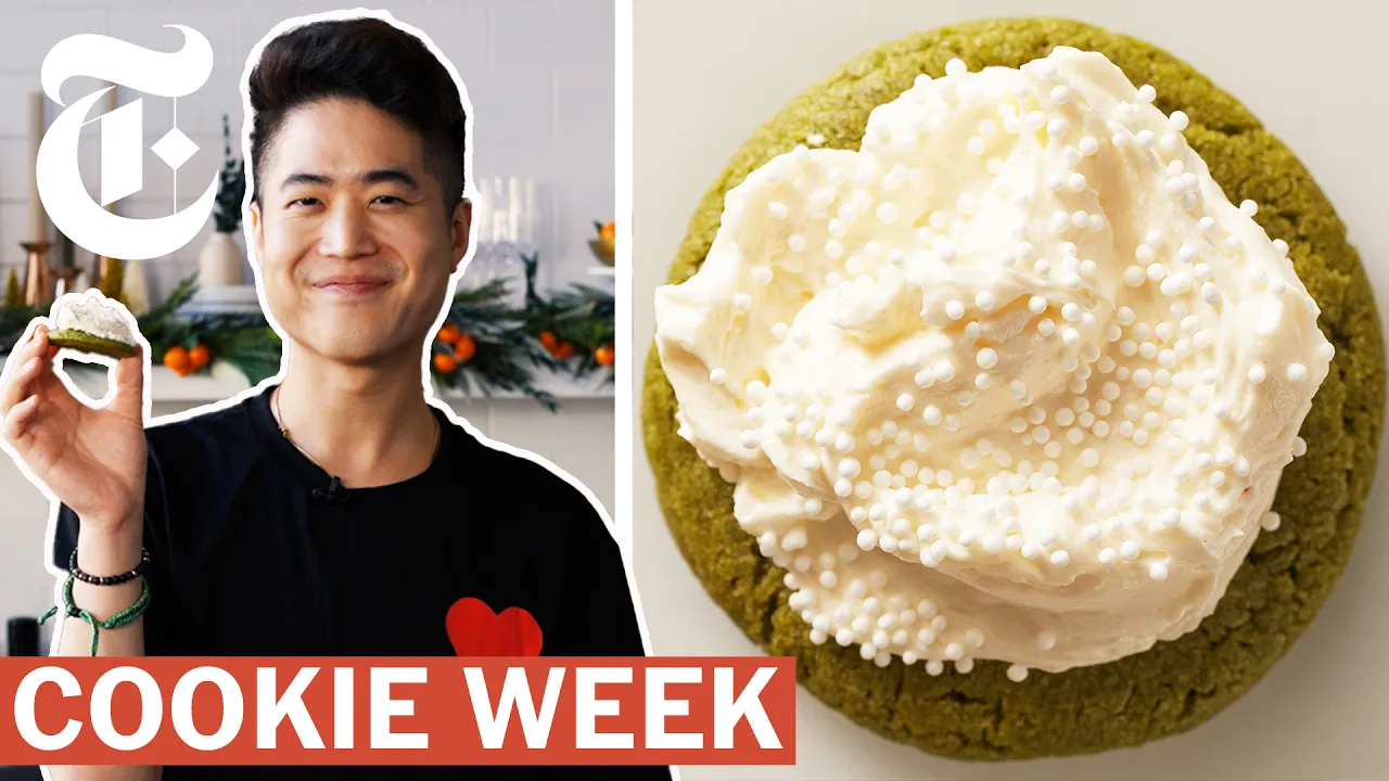 I love this part cuz in my mind I'm like this taking forever and then my hand kind of hurts but then you guys always edit it to make it look so [Music] easy hi it's Eric I'm a cooking columnist for the New York Times and it's cookie week now we're in year four and this year this is a matcha latte cookie the base is a really chewy flavorful matcha cookie and the frosting is this pomidor of vanilla and milk it's matcha and Latte it's both it's matcha latte matcha latte cookie it was hard to get