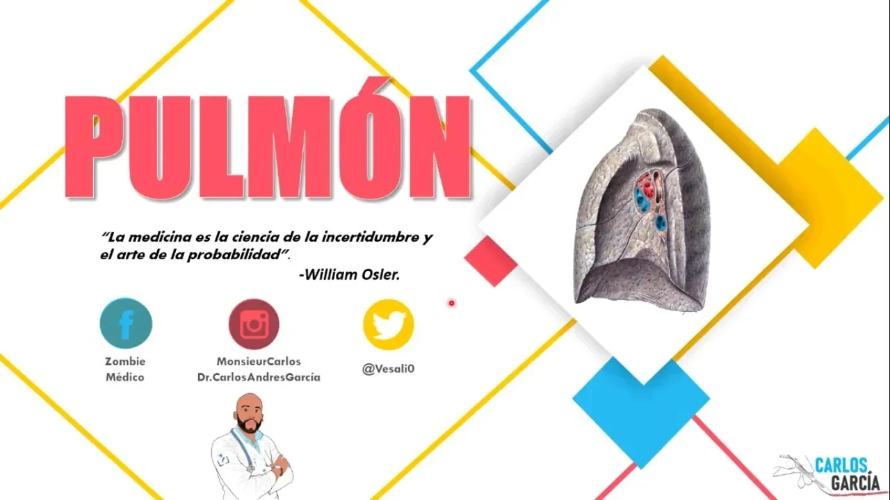 [Música] muy bien en la clase de hoy Entonces vamos a hablar sobre el pulmón los pulmones pues son los órganos principales de la respiración su función principal es oxigenar la sangre mediante un proceso de difusión entre oxígeno y dióxido de carbono que se da en los en los alveolos y que se conoce pues como la hematosis sin embargo contrario a lo que ustedes pueden llegar a pensar Esta no es su única función el pulmón tiene funciones importantes también como por ejemplo regular el equilibrio ácido básico durante la vida huarina vien en el metabolismo de los