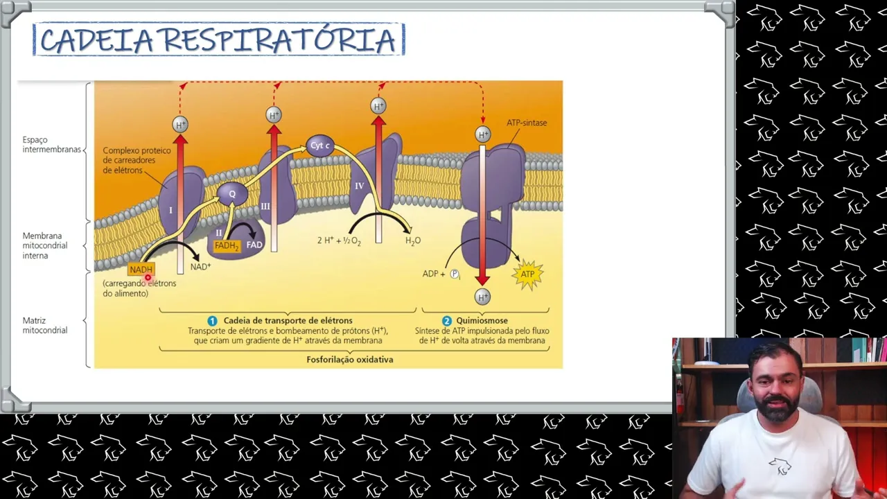 formação da água e o gás carbônico vem de onde professor fica ligado na aula que já já eu te conto beleza os elétrons e os hidrogênios vão ser transportados até o seu destino final por duas moléculas inhas aceptoras intermediárias de elétrons hidrogênios dois transportadores chamados de NAD e FAD o NAD pega elétrons e hidrogênios e fica na forma reduzida chamada nadh e o FAD pega elétrons e hidrogênios e fica na forma reduzida chamada fadh2 quando o NAD H entrega os elétrons ele é reoxidar a NAD ou NAD mais e o FAD H2 quando ele entrega