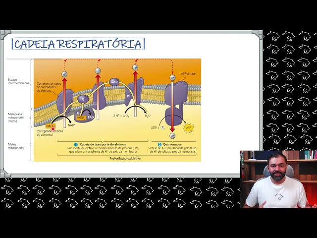 enzima muito importante chamada ATP sintase ou ATP sintetase com esse nome ATP sintase Poxa é uma enzima que sintetiza ATP os prótons que foram pro pro espaço intermembranas na hora de retornar eles somente passam pela ATP sintase no que os prótons passam pela ATP sintase a ATP sintase promove eh o encaixe digamos assim de um fosfato no ADP formando o ATP para resumir Galera Os prótons Retornam do espaço intermembranas pela ATP sintase e ela promove a formação do ATP trifosfato de adenos Beleza então fechamos aí a nossa cadeia respiratória agora bora ver aí galera algo