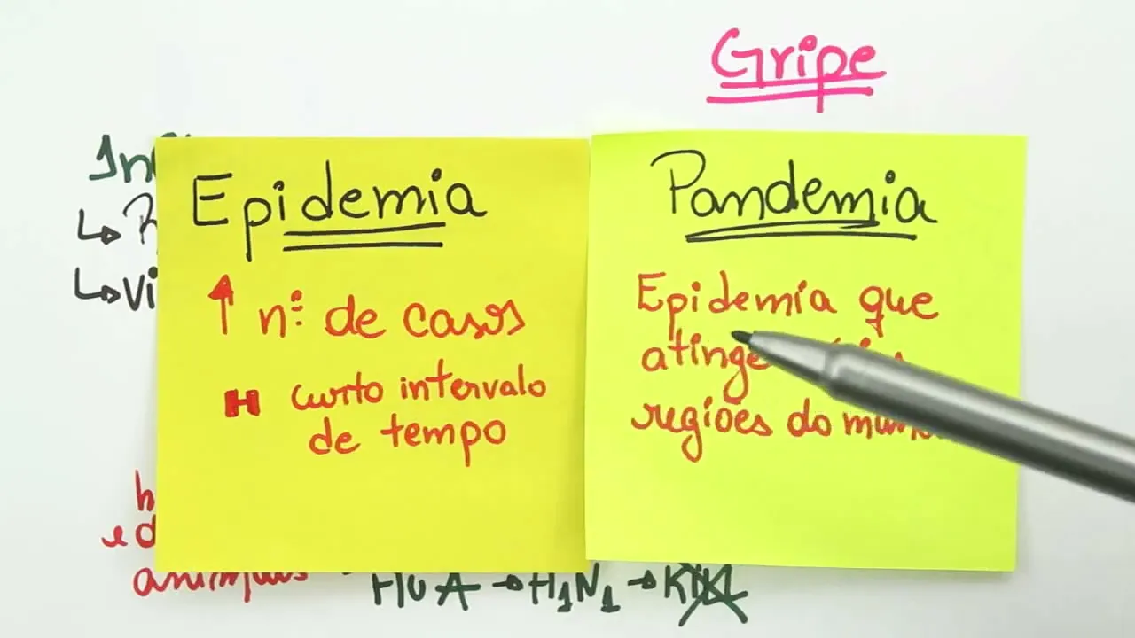 N1 inicialmente foi conhecido como gripe suína certo e ele é um vírus que que circulava então entre os hos mas que também contaminou humanos certo então ele é ã mortal assim né ele matou algumas algumas pessoas muitas pessoas na verdade no mundo quando ele teve então ã em alta Falando nisso acho importante a gente começar a ter clareza de alguns conceitos galera do me salva o primeiro conceito que a gente vai vi agora é o conceito de epidemia Então vamos ver epidemia quando a gente tem um alto número de casos num curto intervalo de tempo