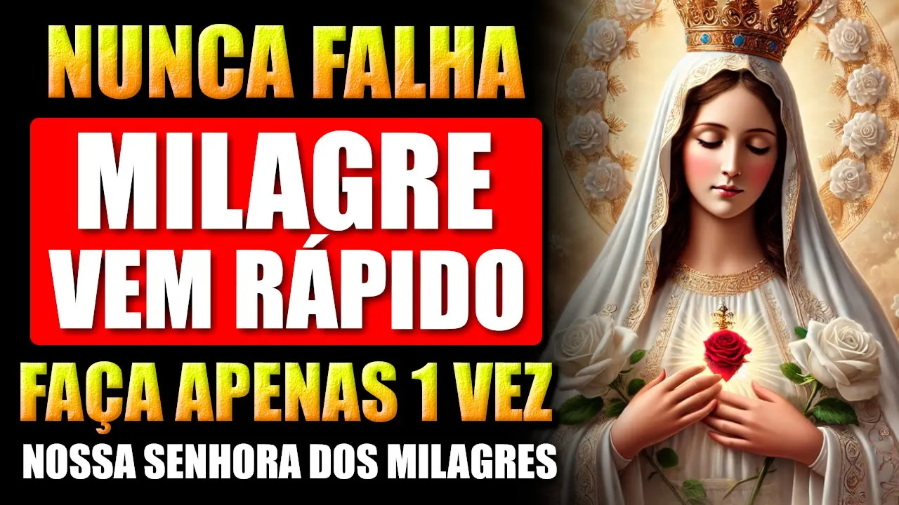 [Música] está pronto para receber o milagre que você tanto precisa se você está buscando uma solução rápida e poderosa para seus problemas Está é a oração que pode transformar sua vida a Nossa Senhora dos Milagres é conhecida por atender os pedidos mais urgentes com rapidez e eficácia não perca tempo venha de coração aberto e cheio de fé Faça esta oração com devoção e prepare-se para ver o impossível acontecer convide agora mesmo a presença da mãe dos milagres em sua vida e sinta a força da sua intercessão poderosa seu pedido urgente será atendido e você poderá