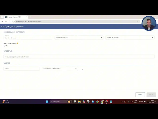 Olá me chamo Globo sou agente de Treinamentos e seja bem-vindo ao tópico produtos do módulo contas e pdv para acessar clique em contas e PDV e produtos e nesse tópico iremos cadastrar os produtos comercializados nos pontos de venda do estabelecimento e também iremos configurá-los aqui já temos alguns produtos cadastrados mas vou cadastrar no novo produto clicando no botão verde no símbolo mais o produto cadastrado será uma sobremesa Então vou inserir aqui o tipo como e vou inserir aqui o nome dessa sobremesa será um tiram de Pera vou inserir também uma descrição podemos inserir não é