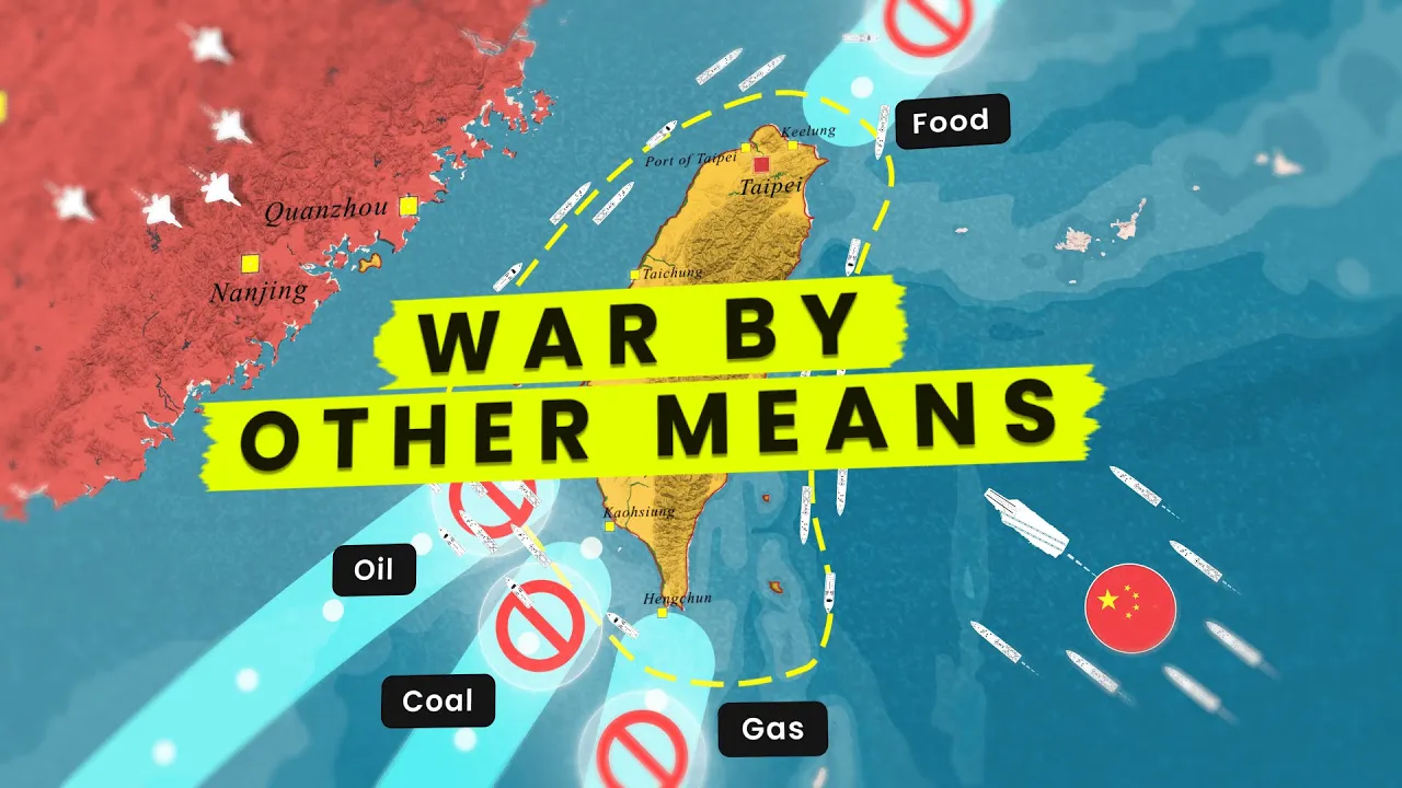 Taiwan for a prolonged period it might Force the Taiwanese to capitulate after all a nation cut off from the sea is a nation gasping for [Music] air violence exists in Shades from The Unseen to the undeniable gry Zone Warfare sits at the far edge of that scale suppose some sort of incident were to happen by the straight of Taiwan Beijing could use that to instigate a gray Zone blockade under the pretense of a humanitarian Mission or some law enforcement operation China could establish a quarantine Zone that covers Taiwan and set new terms for who can