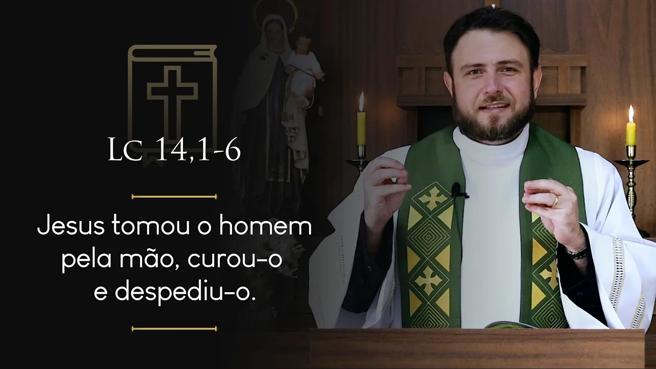 comer na casa de um dos chefes os fariseus e eles o observavam diante de Jesus havia um hidrópico tomando a palavra Jesus falou aos Mestres da lei e aos fariseus a lei permite curar em dia de sábado ou não mas eles ficaram em silêncio então Jesus tomou o homem pela mão o curou e despediu depois lhes disse se algum de vós tem um filho ou um boi que cai num poço não o Tira logo mesmo em dia de sábado e eles não foram capazes de responder a isso palavra da salvação glória a vós senhor ontem
