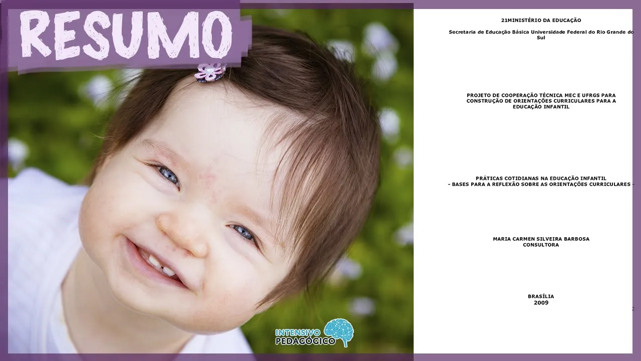 o [Música] Olá tudo bem meu nome é Juliana Garcia está intensivo pedagógico do vídeo de hoje nós vamos conversar sobre um documento bem interessante da Educação Infantil chamado práticas cotidianas na educação infantil bases para reflexão sobre as orientações curriculares o documento que foi escrito pela Maria Barbosa Ele tem essa lógica de reflexão com o título vai trazer para gente tem como objetivo Central problematizaram inspirar e aperfeiçoar as práticas cotidianas realizadas nos estabelecimentos educacionais de educação infantil em todos os documentos anteriores nós conversamos bastante sobre a necessidade de abandonar velhas práticas ou práticas mais desatualizados e