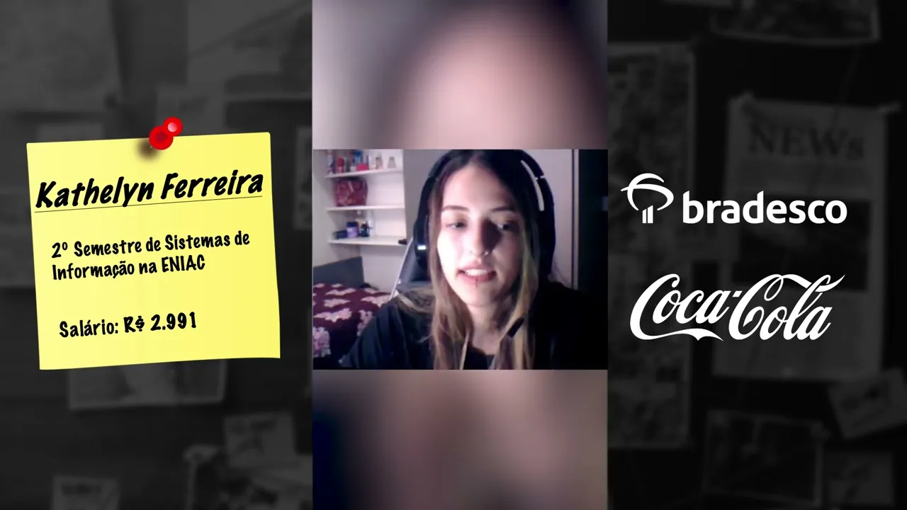 tarde e no outro de tarde à noite Então tava muito corrido aí eu me inscrevi no Bradesco tecnologia Mas eu ainda estava com o pé muito atrás porque eu nunca tinha sido chamada pé dinâmico sempre parava no feed cultural eu tava já ansiosíssima né Tipo eu tava assim meu Deus eu vou ficar tendo que fazer processo até o ano que vem não vou entrar já no meu estágio e aí vieram duas aprovações né o meu primo ele me falou do do pd há muito tempo antes só que eu era ainda tava na escola e aí