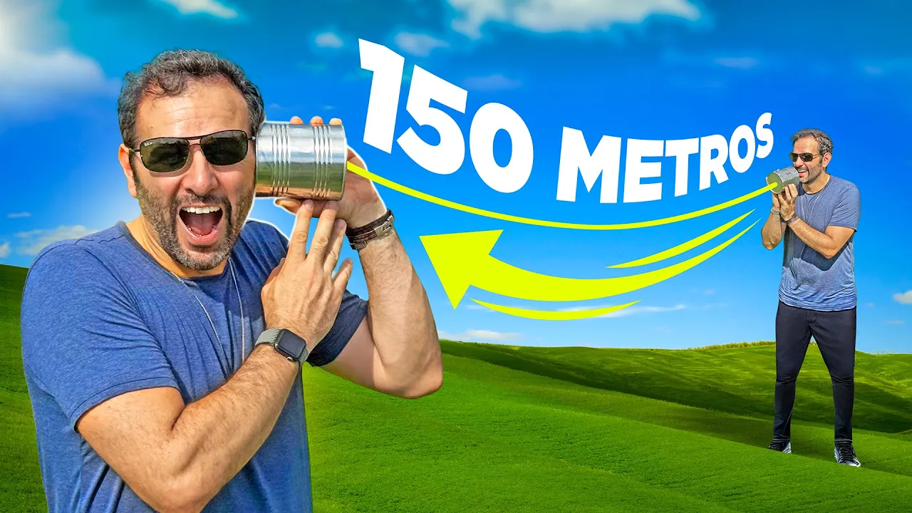E aí tá conseguindo me ouvir Hoje a gente vai ter 6 limos de telefone de lata e aí quantos metros será que esse negócio consegue alcançar [Música] hein tenho certeza que esse aqui é um dos brinquedos mais clássicos do folclore brasileiro o telefone de lata o telefone de massa de tomate telefone de lata de ervilha o telefone da Turma da Mônica se você tem menos de uns 30 anos talvez você nunca tenha brincado com isso eu vou ensinar a fazer o modelo mais simples de todos tá são basicamente duas latinhas dessa aqui dessa de ervilha